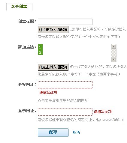 從上圖可以看出360點睛的創意添加編輯形式和百度鳳巢基本相同